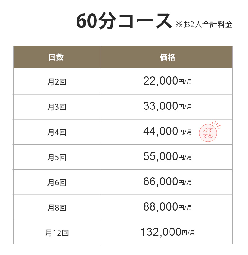 トレーナーとお部屋の確保代として下記料金をいただいております。
